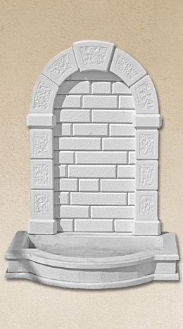 Βρύση από λευκό τσιμέντο με γαλβανιζέ οπλισμό, υαλοΐνες και ειδικά πρόσμεικτα. Προσφέρουμε μεγάλη ποικιλία σχεδίων για αίθρια, κήπους, αυλές και χώρους πρασίνου.