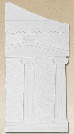 Βρύση από λευκό τσιμέντο με γαλβανιζέ οπλισμό, υαλοΐνες και ειδικά πρόσμεικτα. Προσφέρουμε μεγάλη ποικιλία σχεδίων για αίθρια, κήπους, αυλές και χώρους πρασίνου.