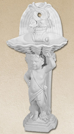 Βρύση από λευκό τσιμέντο με γαλβανιζέ οπλισμό, υαλοΐνες και ειδικά πρόσμεικτα. Προσφέρουμε μεγάλη ποικιλία σχεδίων για αίθρια, κήπους, αυλές και χώρους πρασίνου.