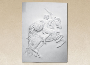 Γλυπτό/ανάγλυφο από λευκό τσιμέντο με γαλβανιζέ οπλισμό, υαλοΐνες και ειδικά πρόσμεικτα. Προσφέρουμε μεγάλη ποικιλία σχεδίων για τη διακόσμηση εισόδων, κήπων, αλλά και εσωτερικών χώρων.