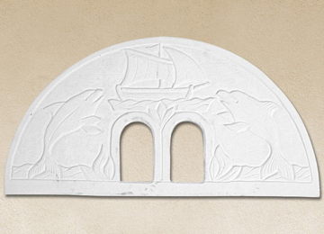 Γλυπτό/ανάγλυφο από λευκό τσιμέντο με γαλβανιζέ οπλισμό, υαλοΐνες και ειδικά πρόσμεικτα. Προσφέρουμε μεγάλη ποικιλία σχεδίων για τη διακόσμηση εισόδων, κήπων, αλλά και εσωτερικών χώρων.