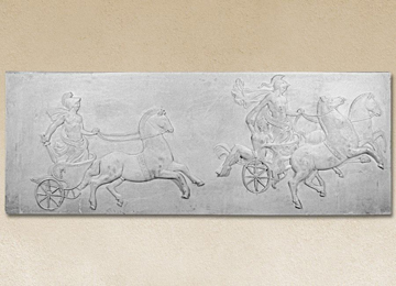 Γλυπτό/ανάγλυφο από λευκό τσιμέντο με γαλβανιζέ οπλισμό, υαλοΐνες και ειδικά πρόσμεικτα. Προσφέρουμε μεγάλη ποικιλία σχεδίων για τη διακόσμηση εισόδων, κήπων, αλλά και εσωτερικών χώρων.
