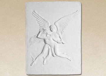 Γλυπτό/ανάγλυφο από λευκό τσιμέντο με γαλβανιζέ οπλισμό, υαλοΐνες και ειδικά πρόσμεικτα. Προσφέρουμε μεγάλη ποικιλία σχεδίων για τη διακόσμηση εισόδων, κήπων, αλλά και εσωτερικών χώρων.