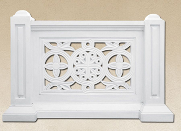 Κάγκελο περίφραξης από λευκό τσιμέντο με γαλβανιζέ οπλισμό, υαλοΐνες και ειδικά πρόσμεικτα. Χρησιμοποιείται σε μπαλκόνια και μάντρες. Διαθέτει τέλειο φινίρισμα και εξαιρετική αντοχή στις καιρικές συνθήκες. Ανθεκτικό ακόμα και στην υγρασία της θάλασσας.