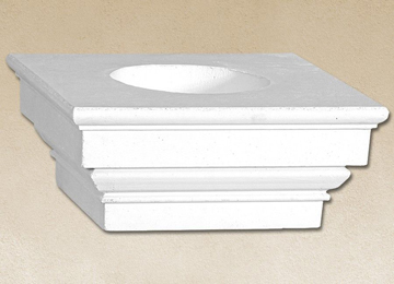 Κεφαλοκόλονο από λευκό τσιμέντο με γαλβανιζέ οπλισμό, υαλοΐνες και ειδικά πρόσμεικτα. Κάθε κεφαλή προσαρμόζεται στις διαστάσεις της κάθε κολόνας.