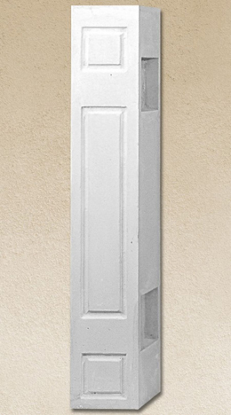 Κολόνα από λευκό τσιμέντο με γαλβανιζέ οπλισμό, υαλοΐνες και ειδικά πρόσμεικτα. Εκτός από διακοσμητική, είναι και στατική, καθώς γεμίζει με μπετόν ώστε να μπορεί να στηρίξει πέργκολες, στέγαστρα σε εισόδους, μπαλκόνια, περιστύλια, καγκελόπορτες.