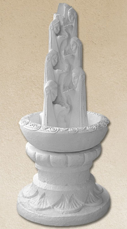 Σιντριβάνι από λευκό τσιμέντο με γαλβανιζέ οπλισμό, υαλοΐνες και ειδικά πρόσμεικτα. Προσφέρουμε μεγάλη ποικιλία σχεδίων για τη διακόσμηση κήπων και τη διαμόρφωση εξωτερικών χώρων.