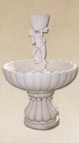 Σιντριβάνι από λευκό τσιμέντο με γαλβανιζέ οπλισμό, υαλοΐνες και ειδικά πρόσμεικτα. Προσφέρουμε μεγάλη ποικιλία σχεδίων για τη διακόσμηση κήπων και τη διαμόρφωση εξωτερικών χώρων.