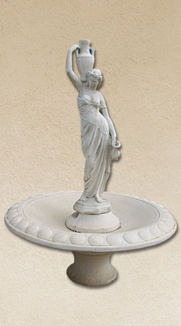 Σιντριβάνι από λευκό τσιμέντο με γαλβανιζέ οπλισμό, υαλοΐνες και ειδικά πρόσμεικτα. Προσφέρουμε μεγάλη ποικιλία σχεδίων για τη διακόσμηση κήπων και τη διαμόρφωση εξωτερικών χώρων.