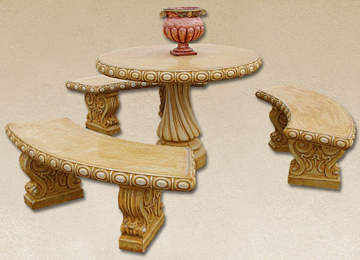 Εξοπλισμός από λευκό τσιμέντο με γαλβανιζέ οπλισμό, υαλοΐνες και ειδικά πρόσμεικτα. Προσφέρουμε μεγάλη ποικιλία σχεδίων για αίθρια, κήπους, αυλές και χώρους πρασίνου.